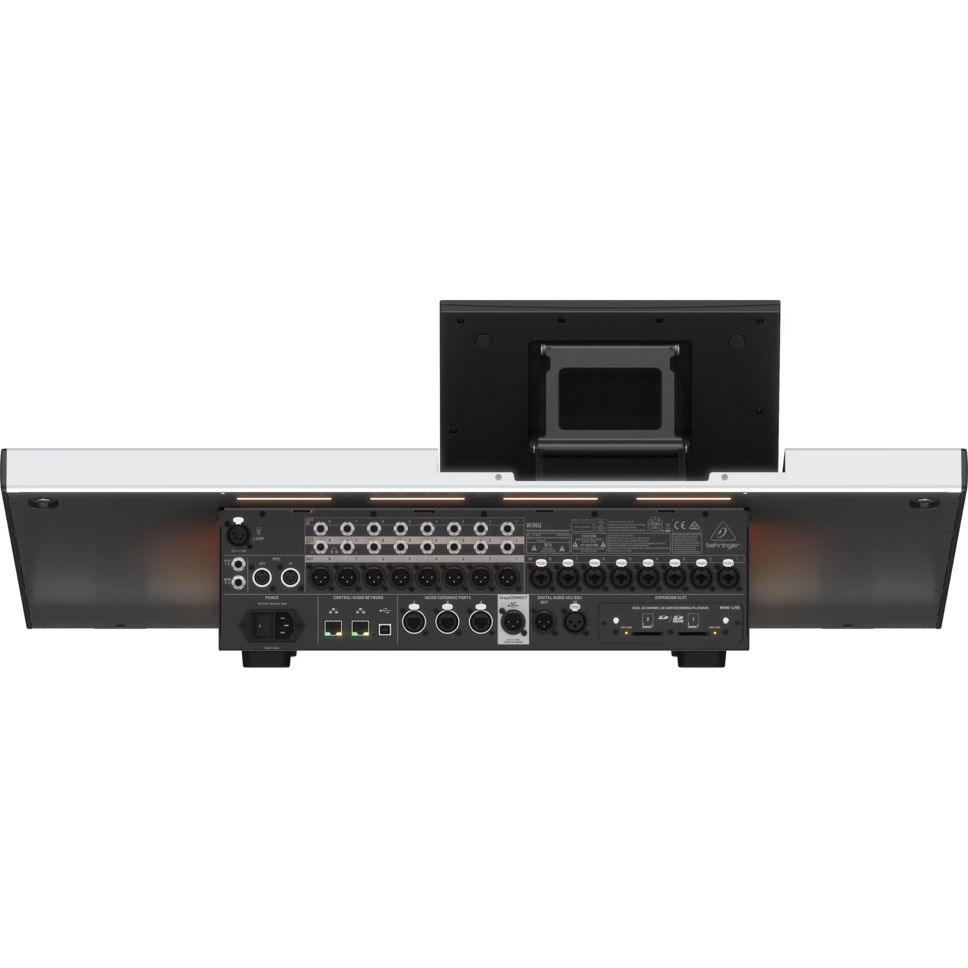 More than 100 audio sources can be connected to the Wing and each of the eight analogue inputs is supported by Midas preamps. The Wing is also fully compatible with the digital snakes we’ve been using in combination with the X32 mixer for years. Alongside the Wing, Behringer have introduced the StageCONNECT protocol which accommodates 32 channels via one standard XLR cable: ideal for monitoring. Also, by adding an expansion card to this mixer (sold separately), it can be expanded for integration with other digital protocols like DANTE, ADAT and MADI.