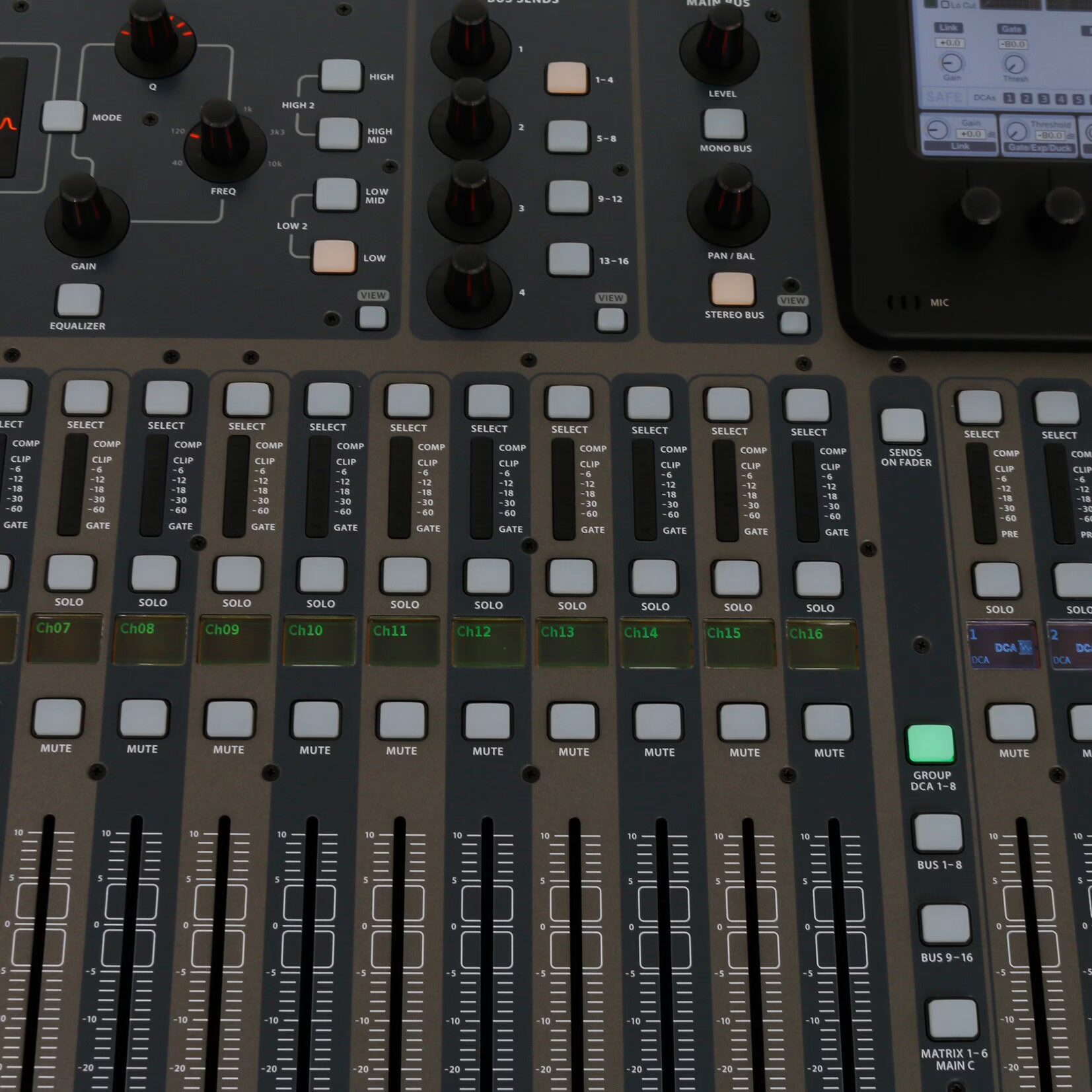 – 6 mute groups and 8 DCA groups on 8 assigned 100 mm motorised faders
