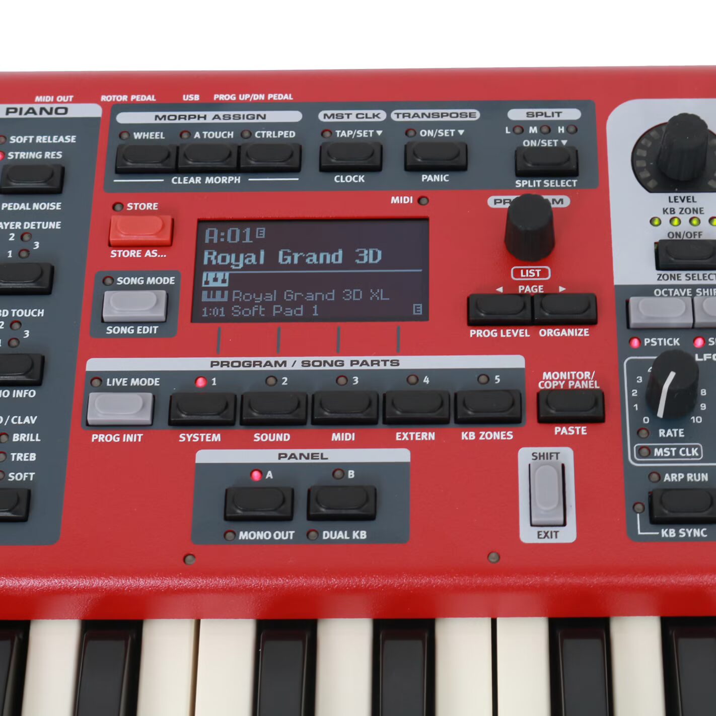 3 split points (4 keyboard zones) with LED indicators