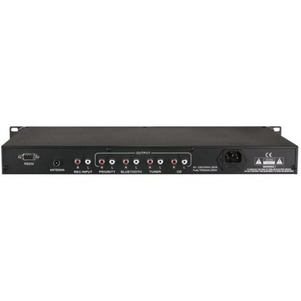 The DAP MPR-200BT is a 1U-high professional media player that can play music from CD, USB, SD, Bluetooth and FM radio. There are three separate outputs for Bluetooth, the FM tuner and CD/USB/SD.