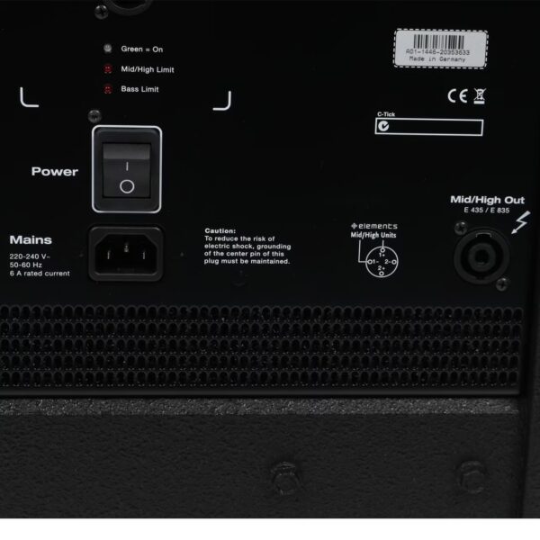 connectors: 1x XLR combi in, 1x XLR through, 2x SpeakON out, 2 E-Connect out