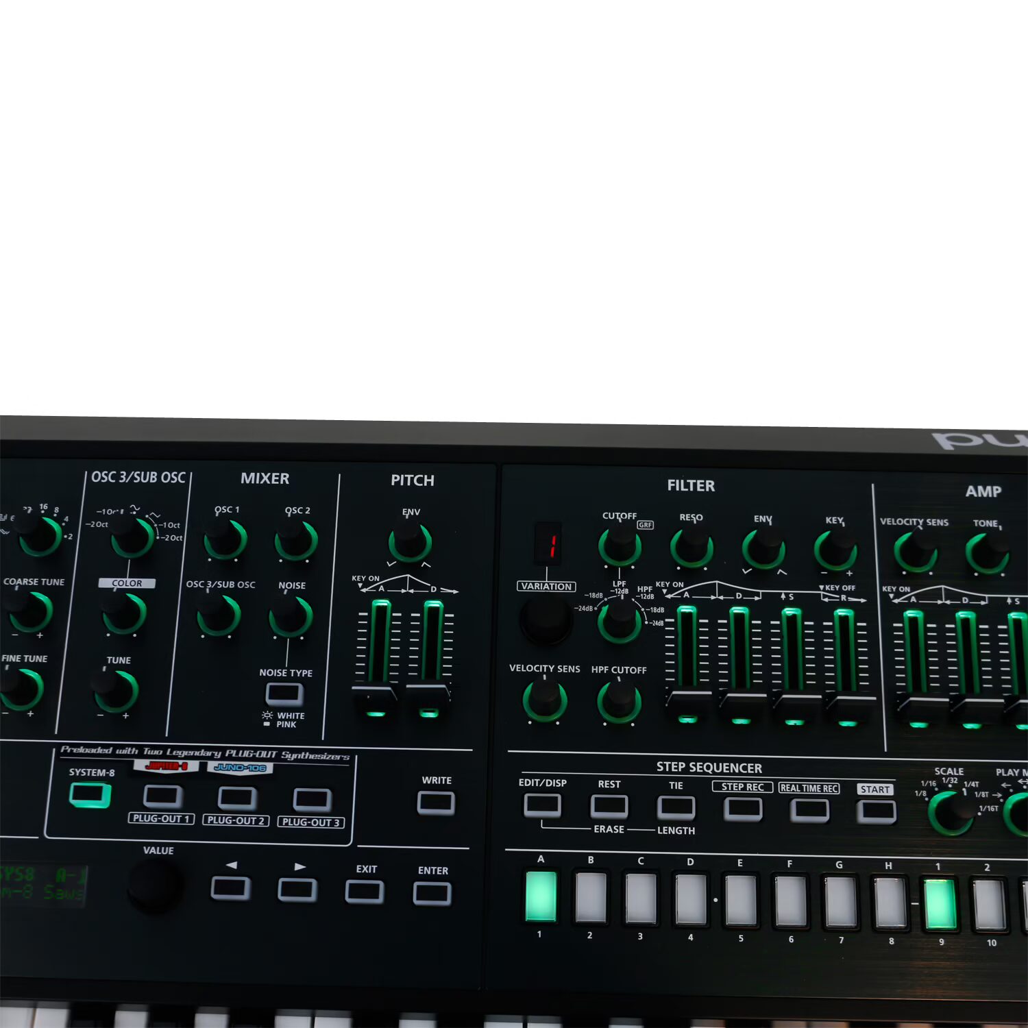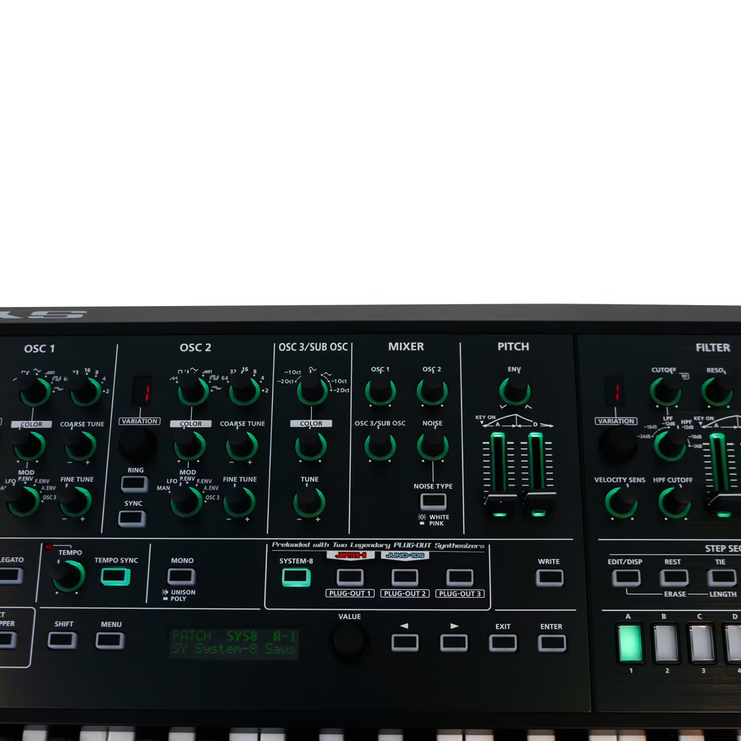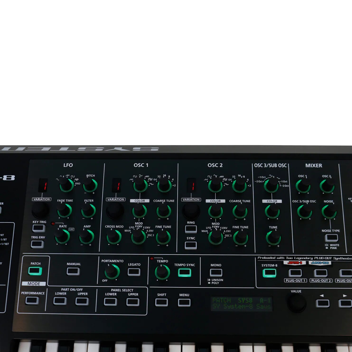 maximum polyphony: 8 voices (SYSTEM-8), PLUG-OUT depends on software