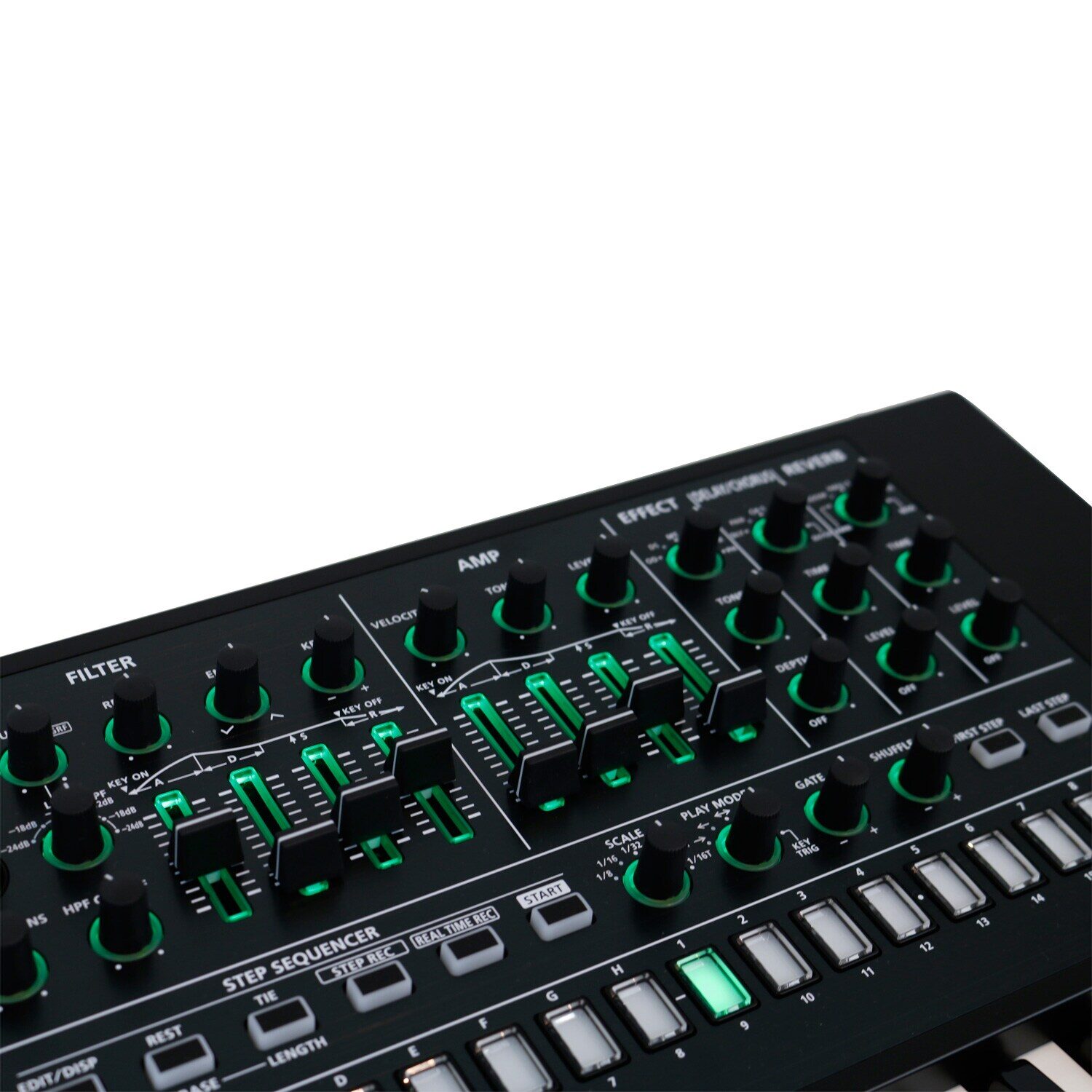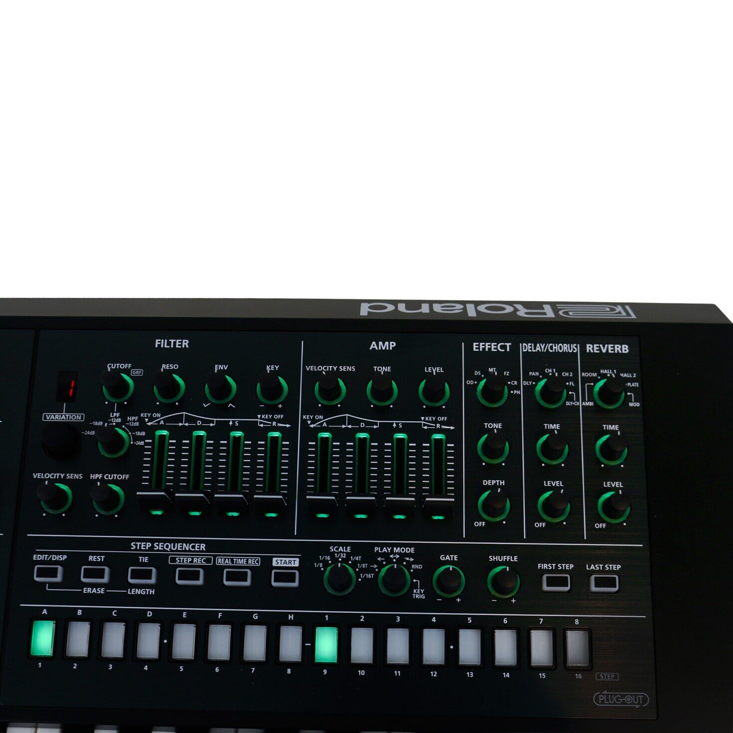 knobs: cutoff, resonance, velocity sens, envelope depth, key follow, HPF cutoff