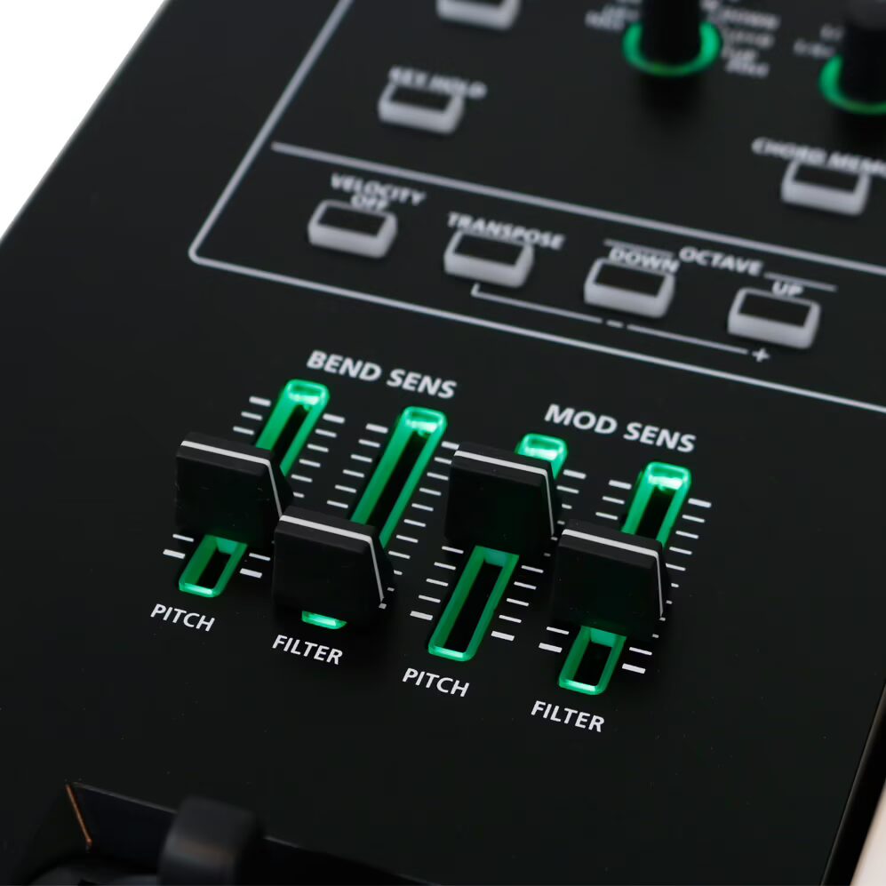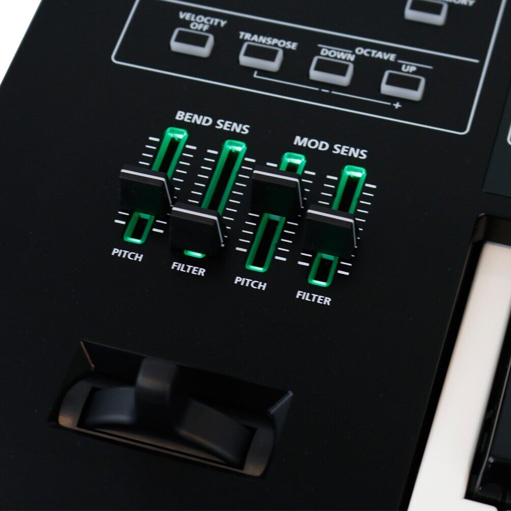 controllers: pitch bend wheel, modulation wheel, bend sens pitch, bend sens filter, mod sens pitch, mod sens filter