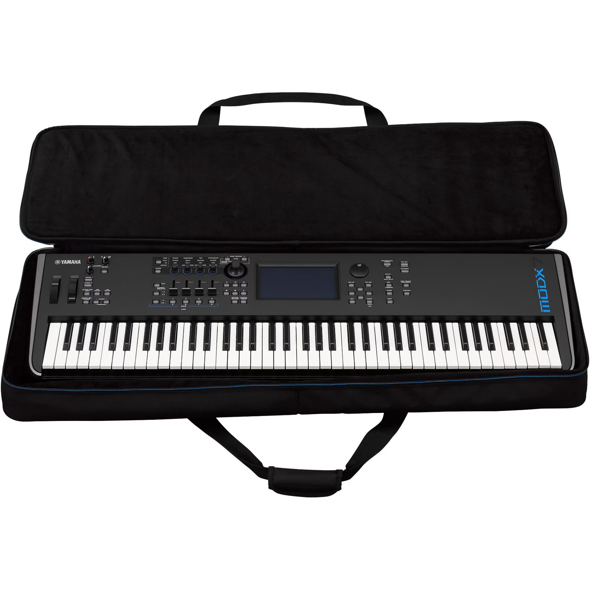 So the MODX7 synthesizer can travel in deluxe, protective style, Yamaha offer up this tailor-made gig bag. Lightweight and fitted with thoughtful accessory pockets, this bag can be comfortably carried backpack-style.